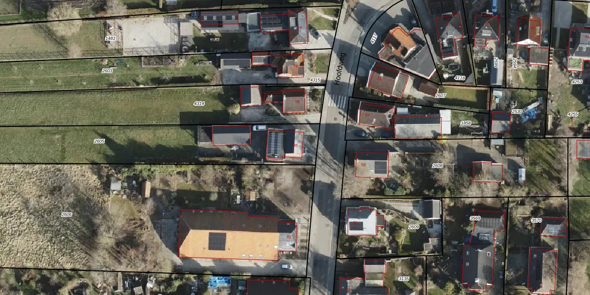 Het perceel waarop Hoofdweg 80 staat heeft een oppervlakte van 2029 m². Dit is een zeer groot perceel. De perceeloppervlakte wordt geregistreerd door het Kadaster. Gedetailleerde informatie over de maten van dit perceel kunt u vinden in het rapport Kadastrale kaart met maatvoering van Hoofdweg 80.