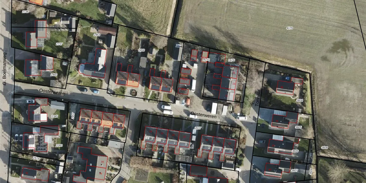 Oosterweren 9-G-1 is gelegen op kadastraal perceel TMT00G4210. Deze kadastrale aanduiding is uniek en wordt gebruikt door het Kadaster om eigendomsrechten en andere zakelijke rechten vast te leggen. Het perceel maakt onderdeel uit van de kadastrale gemeente Termunten.