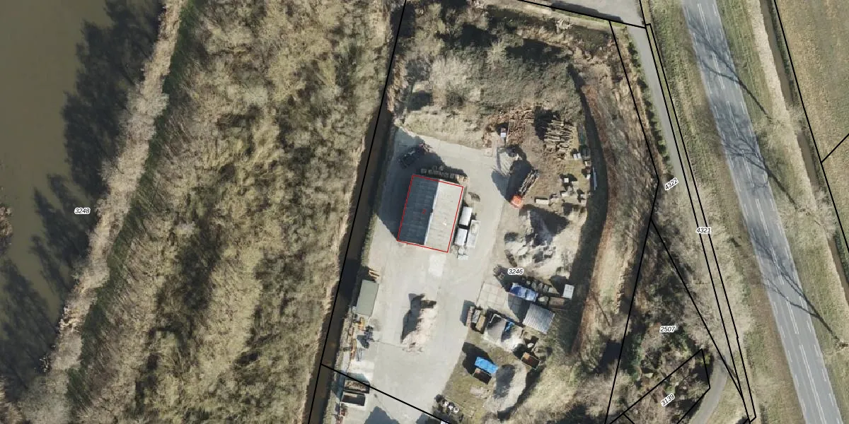 Het adres is gelegen op perceel 3246 in de sectie G en de kadastrale gemeente Termunten. De kadastrale aanduiding is aldus TMT00-G-3246. Het perceel is 6380 m² groot. Dat is kleiner dan de gemiddelde perceeloppervlakte in Termunten, dat op 1,9 ha ligt. De grootste perceeloppervlakte in de kadastrale gemeente is 7,43 km². De kleinste oppervlakte bedraagt 0 m². Dit is het enige adres dat aanwezig is op het perceel. De huidige grenzen van het perceel zijn digitaal in de Basisregistratie Kadaster (BRK) geregistreerd op 10-10-2000.