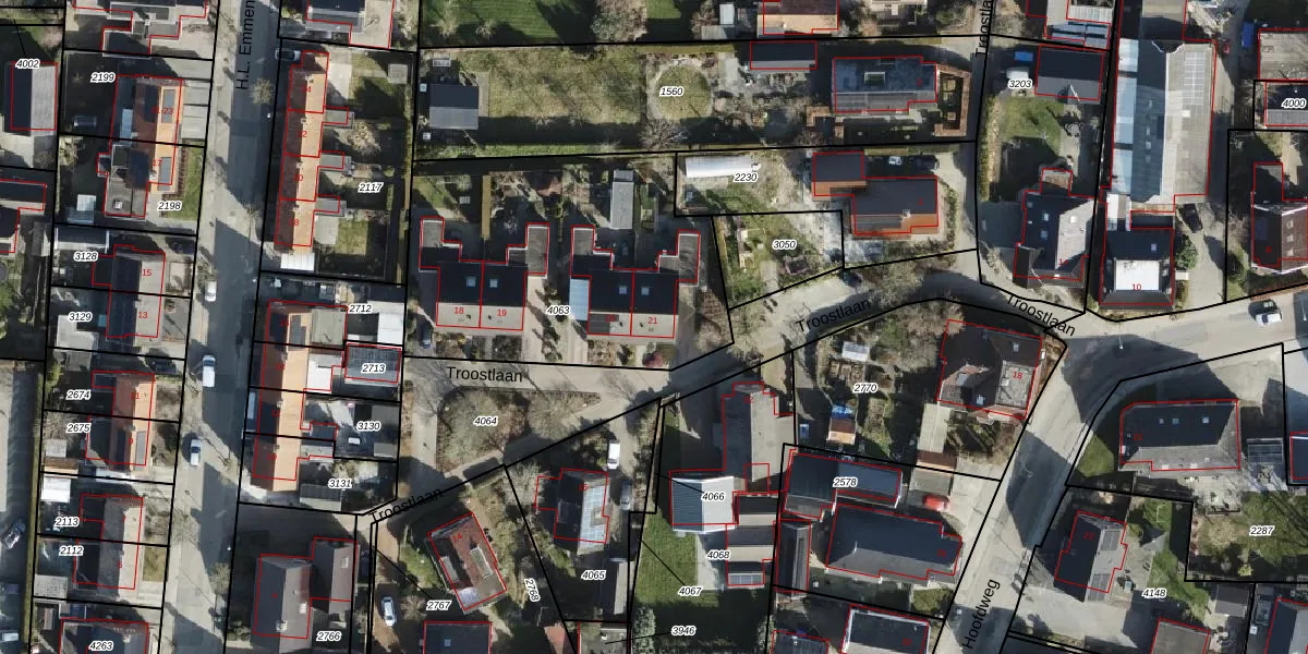 Troostlaan 21 is gelegen op kadastraal perceel TMT00G4063. Deze kadastrale aanduiding is uniek en wordt gebruikt door het Kadaster om eigendomsrechten en andere zakelijke rechten vast te leggen. Het perceel maakt onderdeel uit van de kadastrale gemeente Termunten.
