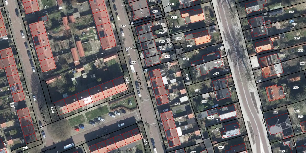 Akeleistraat 16 is gelegen op kadastraal perceel WGN00B9428. Deze kadastrale aanduiding is uniek en wordt gebruikt door het Kadaster om eigendomsrechten en andere zakelijke rechten vast te leggen. Het perceel maakt onderdeel uit van de kadastrale gemeente Wageningen.