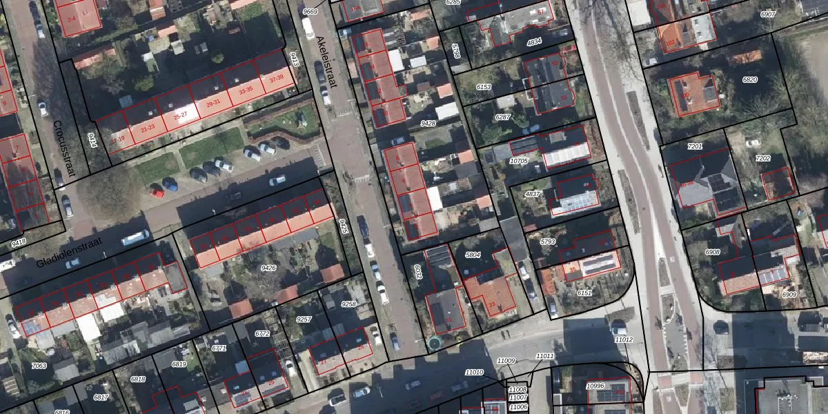 Akeleistraat 4 is gelegen op kadastraal perceel WGN00B9428. Deze kadastrale aanduiding is uniek en wordt gebruikt door het Kadaster om eigendomsrechten en andere zakelijke rechten vast te leggen. Het perceel maakt onderdeel uit van de kadastrale gemeente Wageningen.
