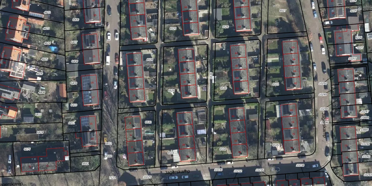 Jagerskamp 34 is gelegen op kadastraal perceel WGN00B6529. Deze kadastrale aanduiding is uniek en wordt gebruikt door het Kadaster om eigendomsrechten en andere zakelijke rechten vast te leggen. Het perceel maakt onderdeel uit van de kadastrale gemeente Wageningen.