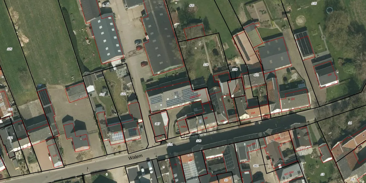 Het perceel waarop Walem 108-C staat heeft een oppervlakte van 1,2 ha. Dit is een zeer groot perceel. De perceeloppervlakte wordt geregistreerd door het Kadaster. Gedetailleerde informatie over de maten van dit perceel kunt u vinden in het rapport Kadastrale kaart met maatvoering van Walem 108-C.