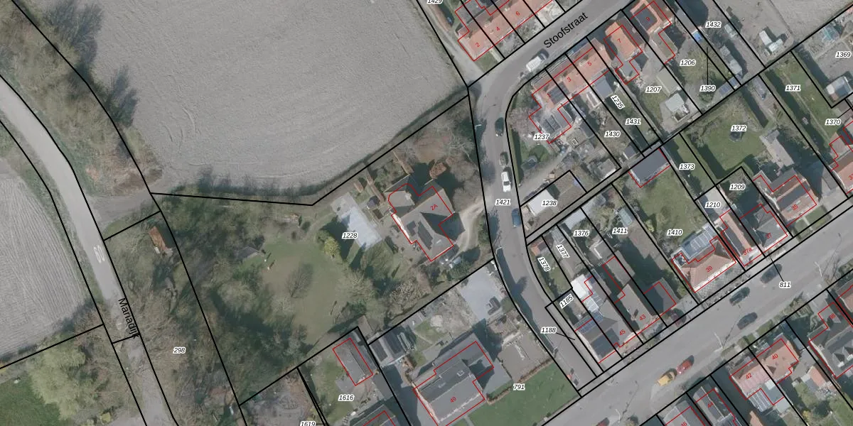 Het perceel waarop Stoofstraat 2-A staat heeft een oppervlakte van 2790 m². Dit is een zeer groot perceel. De perceeloppervlakte wordt geregistreerd door het Kadaster. Gedetailleerde informatie over de maten van dit perceel kunt u vinden in het rapport Kadastrale kaart met maatvoering van Stoofstraat 2-A.