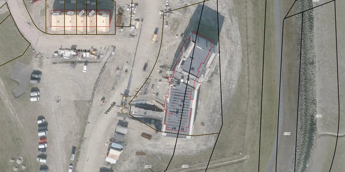 Het perceel waarop Veerdijk 22 staat heeft een oppervlakte van 1671 m². Dit is een zeer groot perceel. De perceeloppervlakte wordt geregistreerd door het Kadaster. Gedetailleerde informatie over de maten van dit perceel kunt u vinden in het rapport Kadastrale kaart met maatvoering van Veerdijk 22.