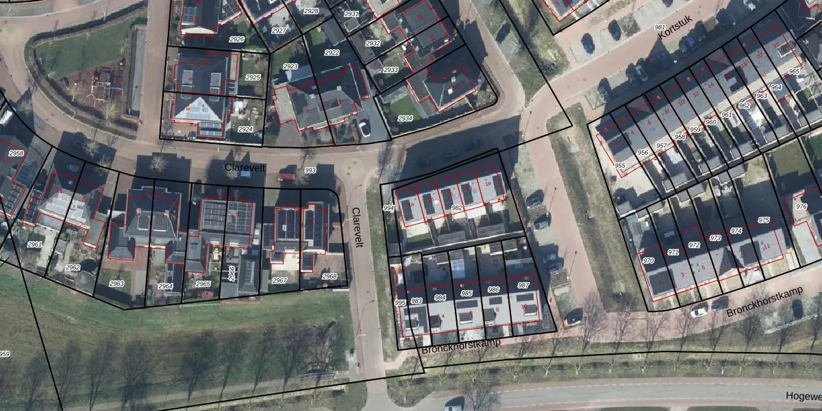 Het perceel waarop Clarevelt 1-a staat heeft een oppervlakte van 553 m². Dit is een groot perceel. De perceeloppervlakte wordt geregistreerd door het Kadaster. Gedetailleerde informatie over de maten van dit perceel kunt u vinden in het rapport Kadastrale kaart met maatvoering van Clarevelt 1-a.