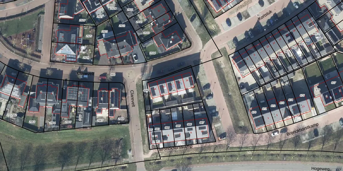 Het perceel waarop Clarevelt 1-c staat heeft een oppervlakte van 553 m². Dit is een groot perceel. De perceeloppervlakte wordt geregistreerd door het Kadaster. Gedetailleerde informatie over de maten van dit perceel kunt u vinden in het rapport Kadastrale kaart met maatvoering van Clarevelt 1-c.