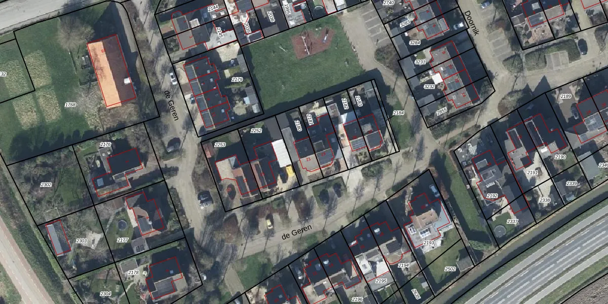 Het perceel waarop de Geren 21 staat heeft een oppervlakte van 212 m². Dit is een middelgroot perceel. De perceeloppervlakte wordt geregistreerd door het Kadaster. Gedetailleerde informatie over de maten van dit perceel kunt u vinden in het rapport Kadastrale kaart met maatvoering van de Geren 21.