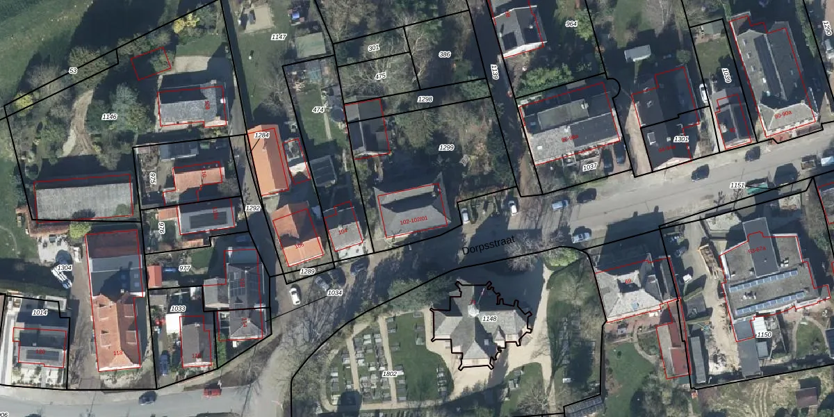 Het perceel waarop Dorpsstraat 102 staat heeft een oppervlakte van 959 m². Dit is een groot perceel. De perceeloppervlakte wordt geregistreerd door het Kadaster. Gedetailleerde informatie over de maten van dit perceel kunt u vinden in het rapport Kadastrale kaart met maatvoering van Dorpsstraat 102.