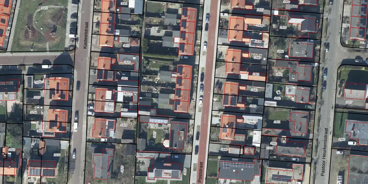 Het perceel waarop G.M. Poststraat 22 staat heeft een oppervlakte van 2341 m². Dit is een zeer groot perceel. De perceeloppervlakte wordt geregistreerd door het Kadaster. Gedetailleerde informatie over de maten van dit perceel kunt u vinden in het rapport Kadastrale kaart met maatvoering van G.M. Poststraat 22.