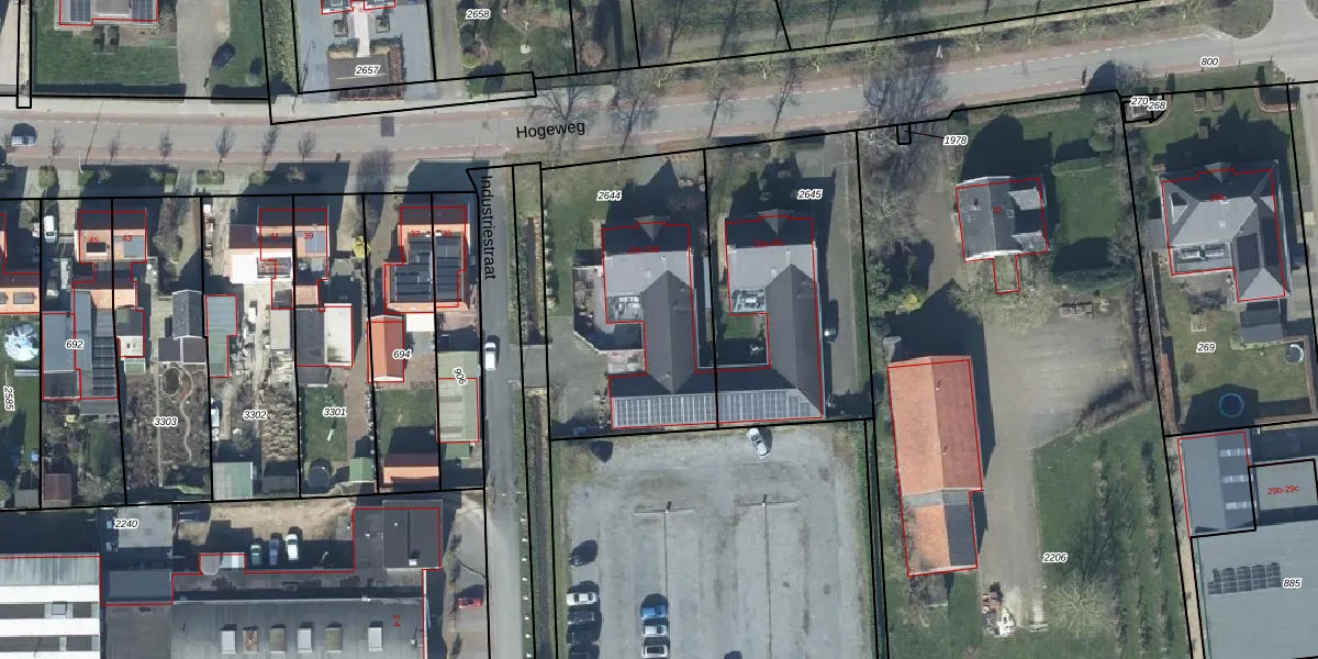Het perceel waarop Hogeweg 33-d staat heeft een oppervlakte van 1053 m². Dit is een zeer groot perceel. De perceeloppervlakte wordt geregistreerd door het Kadaster. Gedetailleerde informatie over de maten van dit perceel kunt u vinden in het rapport Kadastrale kaart met maatvoering van Hogeweg 33-d.