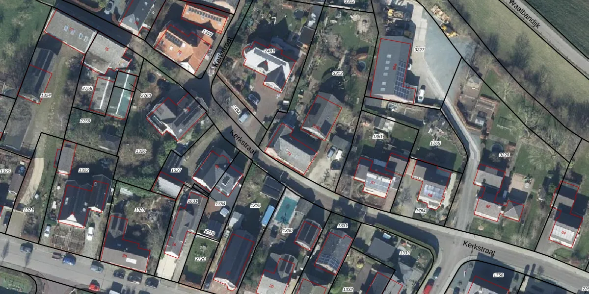 Kerkstraat 72 is gelegen op kadastraal perceel WML00F3313. Deze kadastrale aanduiding is uniek en wordt gebruikt door het Kadaster om eigendomsrechten en andere zakelijke rechten vast te leggen. Het perceel maakt onderdeel uit van de kadastrale gemeente Wamel.
