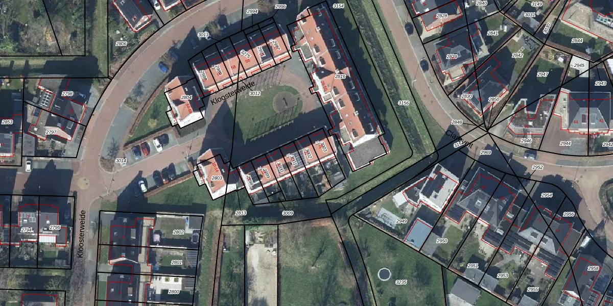 Het perceel waarop Kloosterweide 24 staat heeft een oppervlakte van 100 m². Dit is een middelgroot perceel. De perceeloppervlakte wordt geregistreerd door het Kadaster. Gedetailleerde informatie over de maten van dit perceel kunt u vinden in het rapport Kadastrale kaart met maatvoering van Kloosterweide 24.