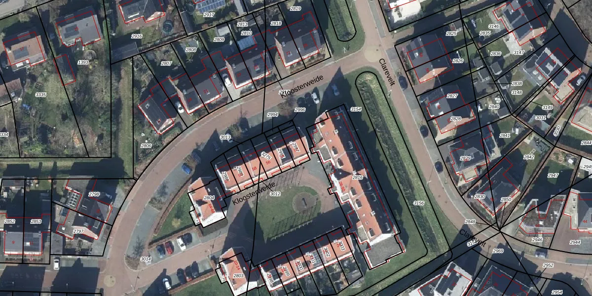 Het perceel waarop Kloosterweide 52 staat heeft een oppervlakte van 71 m². Dit is een klein perceel. De perceeloppervlakte wordt geregistreerd door het Kadaster. Gedetailleerde informatie over de maten van dit perceel kunt u vinden in het rapport Kadastrale kaart met maatvoering van Kloosterweide 52.