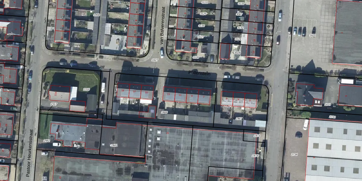Het perceel waarop Pollenstein 11 staat heeft een oppervlakte van 1437 m². Dit is een zeer groot perceel. De perceeloppervlakte wordt geregistreerd door het Kadaster. Gedetailleerde informatie over de maten van dit perceel kunt u vinden in het rapport Kadastrale kaart met maatvoering van Pollenstein 11.