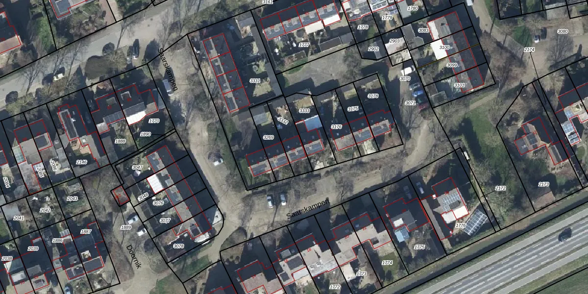 Het perceel waarop Saarskampen 13 staat heeft een oppervlakte van 176 m². Dit is een middelgroot perceel. De perceeloppervlakte wordt geregistreerd door het Kadaster. Gedetailleerde informatie over de maten van dit perceel kunt u vinden in het rapport Kadastrale kaart met maatvoering van Saarskampen 13.
