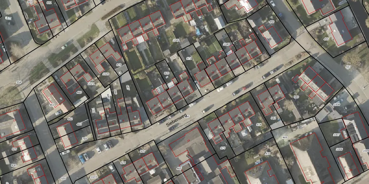 Siebenweg 15 is gelegen op kadastraal perceel BDW00C1041. Deze kadastrale aanduiding is uniek en wordt gebruikt door het Kadaster om eigendomsrechten en andere zakelijke rechten vast te leggen. Het perceel maakt onderdeel uit van de kadastrale gemeente Brederwiede.