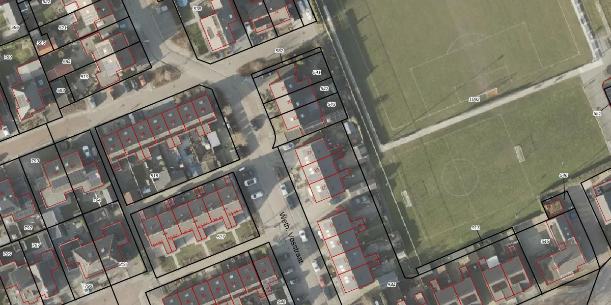 Het perceel waarop Weth. Vosstraat 21 staat heeft een oppervlakte van 2608 m². Dit is een zeer groot perceel. De perceeloppervlakte wordt geregistreerd door het Kadaster. Gedetailleerde informatie over de maten van dit perceel kunt u vinden in het rapport Kadastrale kaart met maatvoering van Weth. Vosstraat 21.