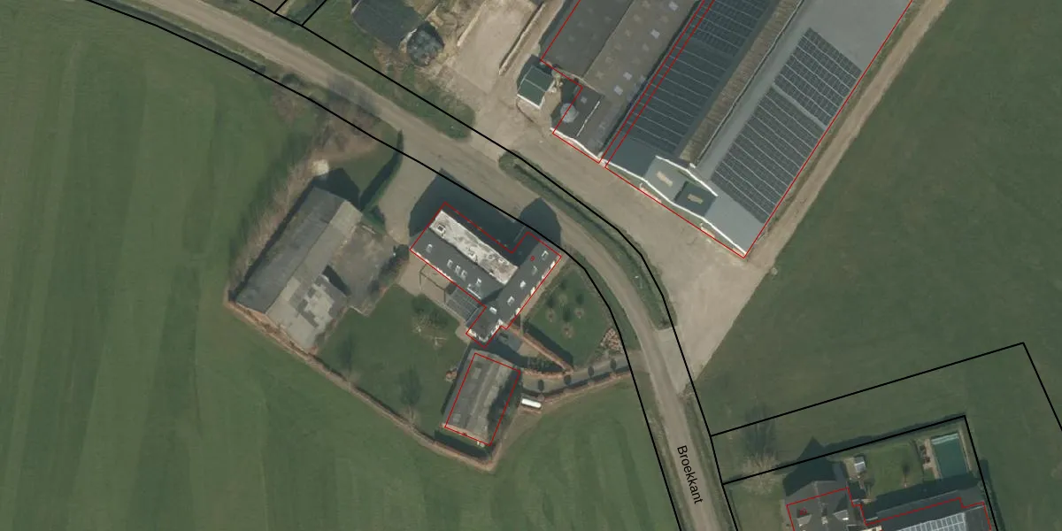 Het perceel waarop Broekkant 9 staat heeft een oppervlakte van 3,6 ha. Dit is een zeer groot perceel. De perceeloppervlakte wordt geregistreerd door het Kadaster. Gedetailleerde informatie over de maten van dit perceel kunt u vinden in het rapport Kadastrale kaart met maatvoering van Broekkant 9.
