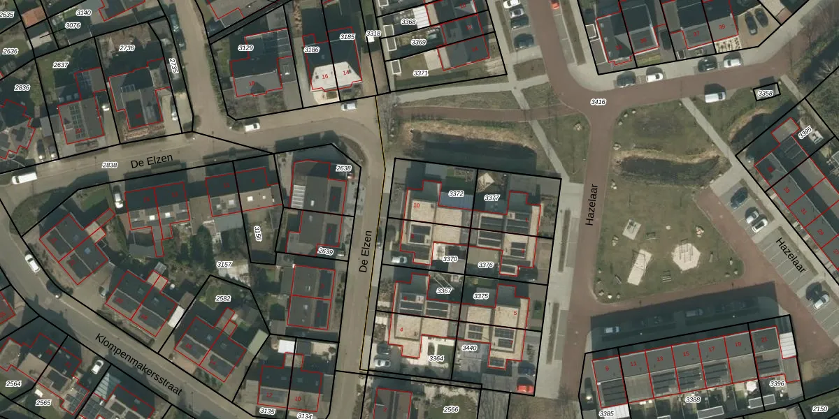 De Elzen 10 is gelegen op kadastraal perceel WRJ00A3372. Deze kadastrale aanduiding is uniek en wordt gebruikt door het Kadaster om eigendomsrechten en andere zakelijke rechten vast te leggen. Het perceel maakt onderdeel uit van de kadastrale gemeente Wanroij.