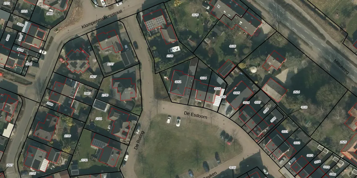 Het perceel waarop De Esdoorn 1 staat heeft een oppervlakte van 354 m². Dit is een groot perceel. De perceeloppervlakte wordt geregistreerd door het Kadaster. Gedetailleerde informatie over de maten van dit perceel kunt u vinden in het rapport Kadastrale kaart met maatvoering van De Esdoorn 1.