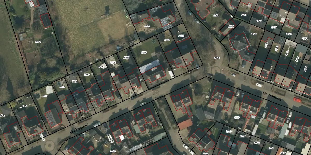 Het perceel waarop De Peppels 20 staat heeft een oppervlakte van 569 m². Dit is een groot perceel. De perceeloppervlakte wordt geregistreerd door het Kadaster. Gedetailleerde informatie over de maten van dit perceel kunt u vinden in het rapport Kadastrale kaart met maatvoering van De Peppels 20.