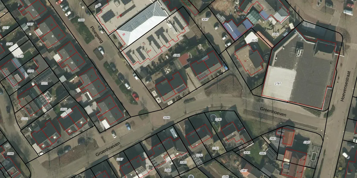 Het perceel waarop Groenhoeven 12 staat heeft een oppervlakte van 1815 m². Dit is een zeer groot perceel. De perceeloppervlakte wordt geregistreerd door het Kadaster. Gedetailleerde informatie over de maten van dit perceel kunt u vinden in het rapport Kadastrale kaart met maatvoering van Groenhoeven 12.