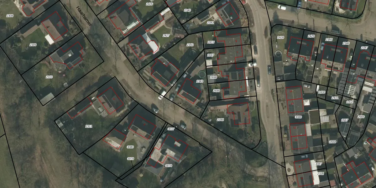 Het perceel waarop Haarhamer 2 staat heeft een oppervlakte van 451 m². Dit is een groot perceel. De perceeloppervlakte wordt geregistreerd door het Kadaster. Gedetailleerde informatie over de maten van dit perceel kunt u vinden in het rapport Kadastrale kaart met maatvoering van Haarhamer 2.