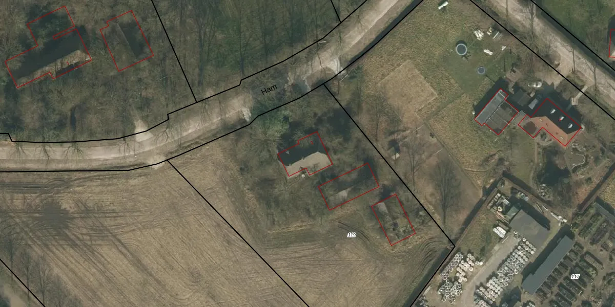 Het perceel waarop Ham 2 staat heeft een oppervlakte van 3990 m². Dit is een zeer groot perceel. De perceeloppervlakte wordt geregistreerd door het Kadaster. Gedetailleerde informatie over de maten van dit perceel kunt u vinden in het rapport Kadastrale kaart met maatvoering van Ham 2.