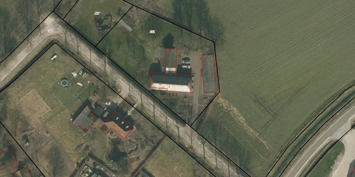Het perceel waarop Ham 3 staat heeft een oppervlakte van 2580 m². Dit is een zeer groot perceel. De perceeloppervlakte wordt geregistreerd door het Kadaster. Gedetailleerde informatie over de maten van dit perceel kunt u vinden in het rapport Kadastrale kaart met maatvoering van Ham 3.