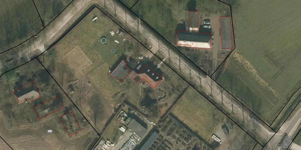 Het perceel waarop Ham 4 staat heeft een oppervlakte van 1,7 ha. Dit is een zeer groot perceel. De perceeloppervlakte wordt geregistreerd door het Kadaster. Gedetailleerde informatie over de maten van dit perceel kunt u vinden in het rapport Kadastrale kaart met maatvoering van Ham 4.