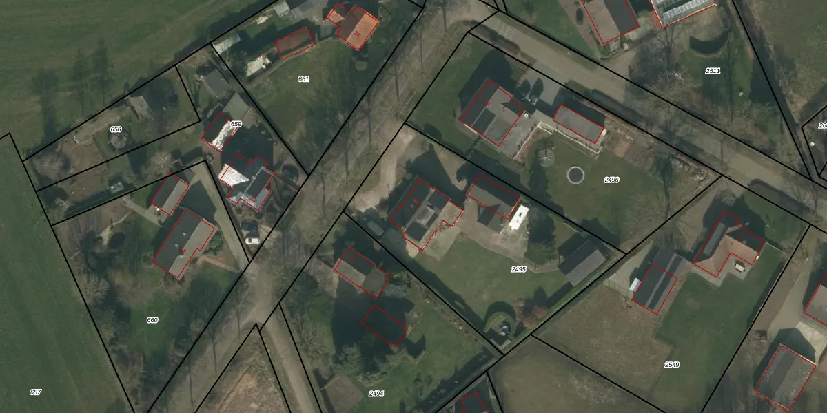 Het adres ligt op het perceel WRJ00-A-2495, dat zich in de kadastrale gemeente Wanroij bevindt. Het perceel is kleiner dan gemiddeld in Wanroij. Het perceel is 1830 m² groot, terwijl het gemiddelde ligt op 1,1 ha. Het grootste perceel in de kadastrale gemeente is 95,7 ha. Het kleinste perceel heeft een oppervlakte van 0 m². Er zijn geen andere adressen aanwezig op het perceel. De huidige grenzen van het perceel zijn digitaal in de Basisregistratie Kadaster (BRK) geregistreerd op 19-06-2007.