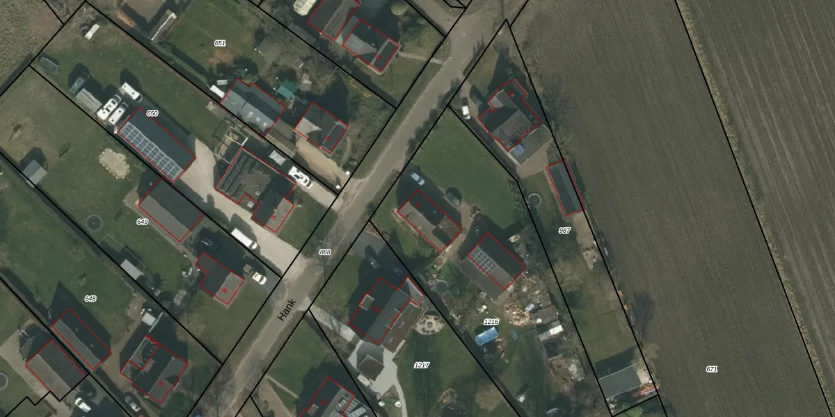 Het perceel waarop Hank 31 staat heeft een oppervlakte van 2055 m². Dit is een zeer groot perceel. De perceeloppervlakte wordt geregistreerd door het Kadaster. Gedetailleerde informatie over de maten van dit perceel kunt u vinden in het rapport Kadastrale kaart met maatvoering van Hank 31.