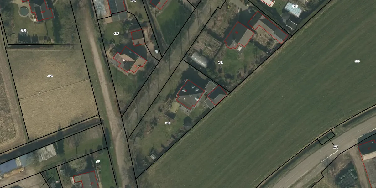 Het adres ligt op het perceel WRJ00-K-664, dat zich in de kadastrale gemeente Wanroij bevindt. Het perceel is kleiner dan gemiddeld in Wanroij. Het perceel is 1435 m² groot, terwijl het gemiddelde ligt op 1,1 ha. Het grootste perceel in de kadastrale gemeente is 95,7 ha. Het kleinste perceel heeft een oppervlakte van 0 m². Dit is het enige adres dat aanwezig is op het perceel. De laatste wijziging in het de Basisregistratie Kadaster (BRK) was op 19-06-2007.