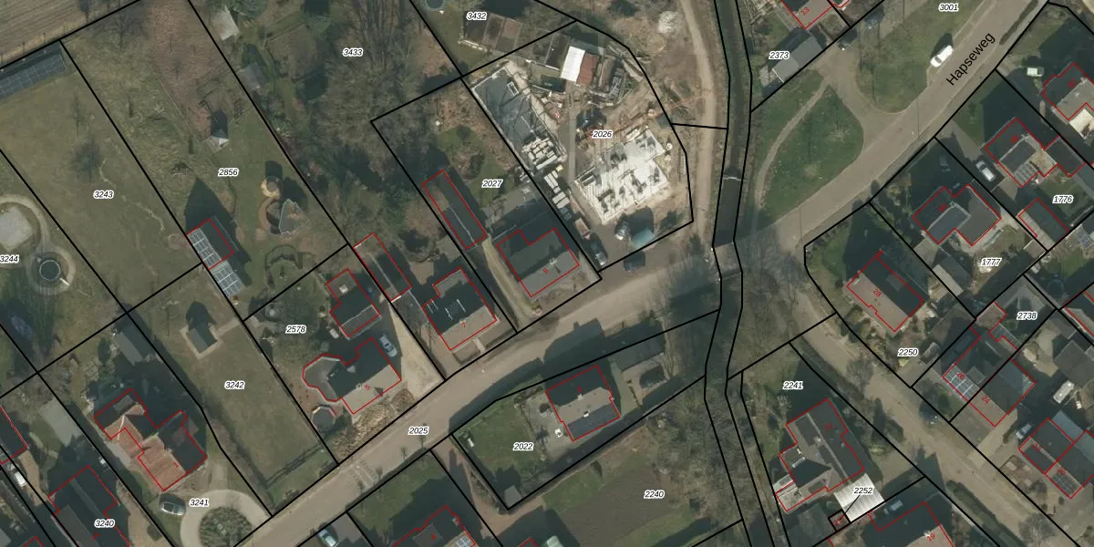 Het perceel waarop Hapseweg 9 staat heeft een oppervlakte van 850 m². Dit is een groot perceel. De perceeloppervlakte wordt geregistreerd door het Kadaster. Gedetailleerde informatie over de maten van dit perceel kunt u vinden in het rapport Kadastrale kaart met maatvoering van Hapseweg 9.