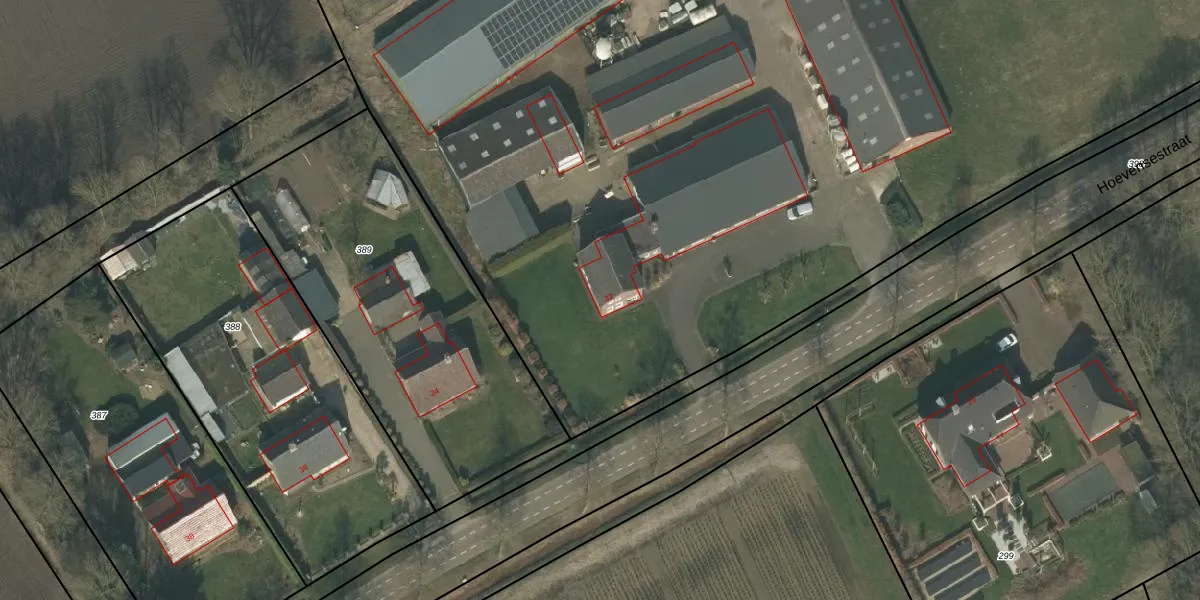Het perceel waarop Hoevensestraat 32 staat heeft een oppervlakte van 9,9 ha. Dit is een zeer groot perceel. De perceeloppervlakte wordt geregistreerd door het Kadaster. Gedetailleerde informatie over de maten van dit perceel kunt u vinden in het rapport Kadastrale kaart met maatvoering van Hoevensestraat 32.