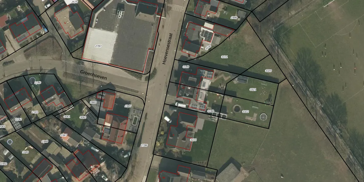 Het perceel waarop Hoevensestraat 7-A staat heeft een oppervlakte van 390 m². Dit is een groot perceel. De perceeloppervlakte wordt geregistreerd door het Kadaster. Gedetailleerde informatie over de maten van dit perceel kunt u vinden in het rapport Kadastrale kaart met maatvoering van Hoevensestraat 7-A.