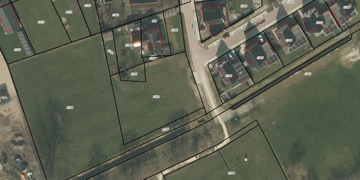 Kattenstraat 10 is gelegen op kadastraal perceel WRJ00K1292. Deze kadastrale aanduiding is uniek en wordt gebruikt door het Kadaster om eigendomsrechten en andere zakelijke rechten vast te leggen. Het perceel maakt onderdeel uit van de kadastrale gemeente Wanroij.