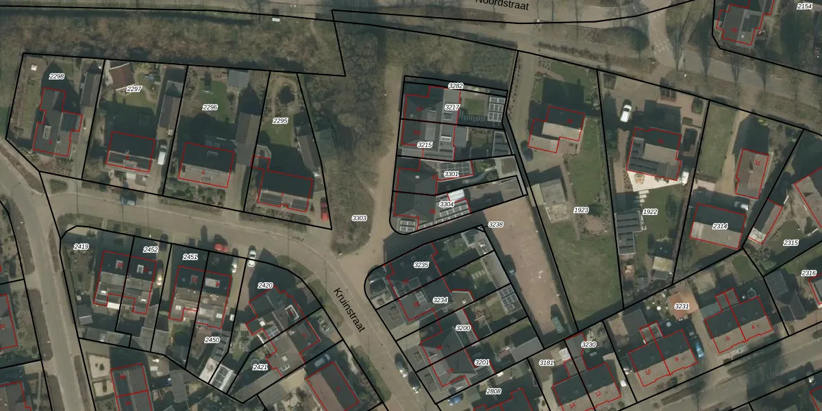 Kruinstraat 2-E is gelegen op kadastraal perceel WRJ00A3304. Deze kadastrale aanduiding is uniek en wordt gebruikt door het Kadaster om eigendomsrechten en andere zakelijke rechten vast te leggen. Het perceel maakt onderdeel uit van de kadastrale gemeente Wanroij.