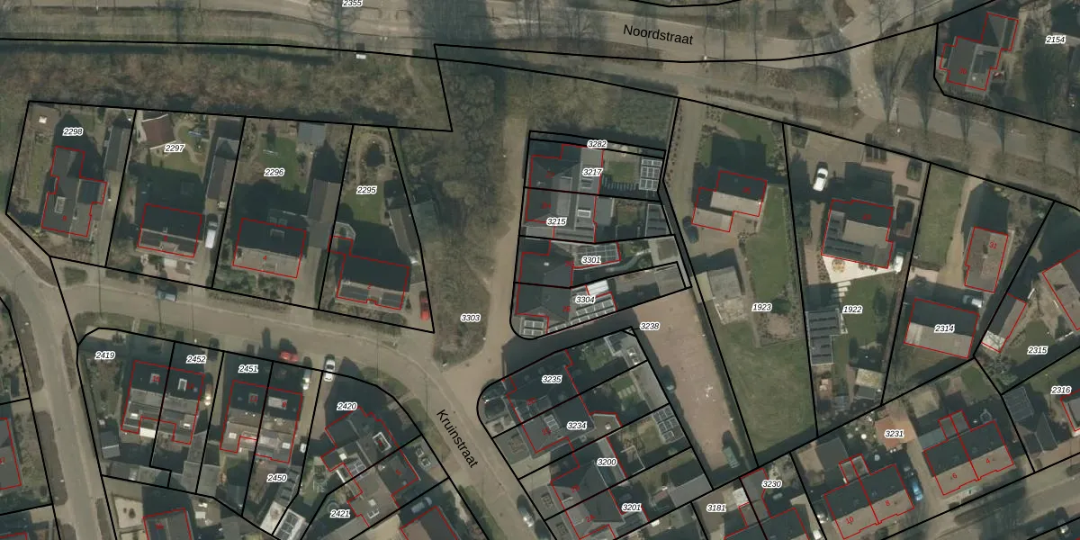 Kruinstraat 2-G is gelegen op kadastraal perceel WRJ00A3301. Deze kadastrale aanduiding is uniek en wordt gebruikt door het Kadaster om eigendomsrechten en andere zakelijke rechten vast te leggen. Het perceel maakt onderdeel uit van de kadastrale gemeente Wanroij.