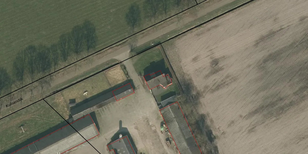 Het perceel waarop Kuilsendijk 1 staat heeft een oppervlakte van 5,8 ha. Dit is een zeer groot perceel. De perceeloppervlakte wordt geregistreerd door het Kadaster. Gedetailleerde informatie over de maten van dit perceel kunt u vinden in het rapport Kadastrale kaart met maatvoering van Kuilsendijk 1.