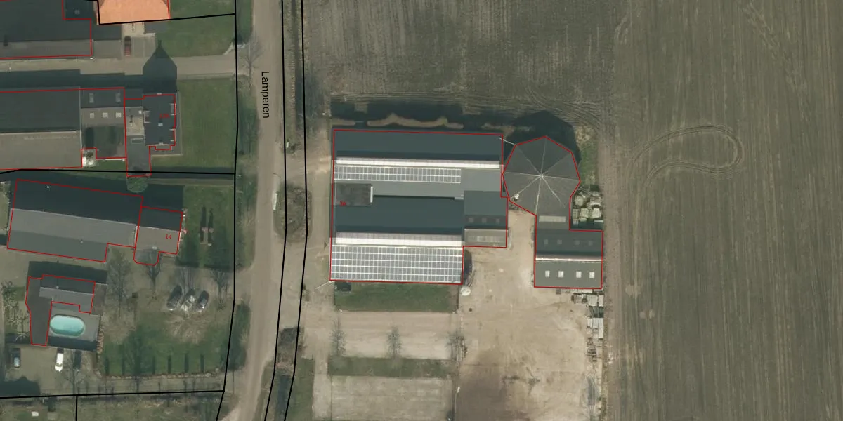 Het perceel waarop Lamperen 3-A staat heeft een oppervlakte van 11,9 ha. Dit is een zeer groot perceel. De perceeloppervlakte wordt geregistreerd door het Kadaster. Gedetailleerde informatie over de maten van dit perceel kunt u vinden in het rapport Kadastrale kaart met maatvoering van Lamperen 3-A.