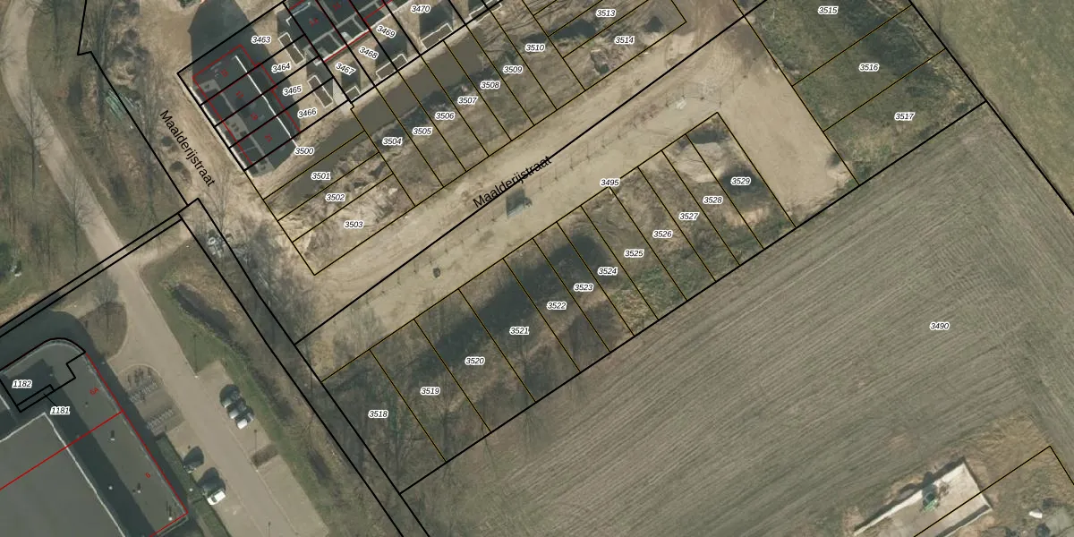 Gebruik de zoekbalk of klik op een perceel voor informatie over de adressen binnen dit perceel.
