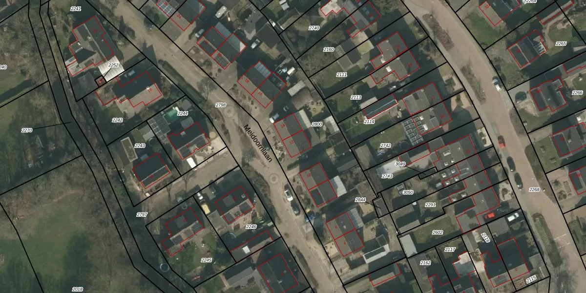 Het perceel waarop Meidoornlaan 12 staat heeft een oppervlakte van 2855 m². Dit is een zeer groot perceel. De perceeloppervlakte wordt geregistreerd door het Kadaster. Gedetailleerde informatie over de maten van dit perceel kunt u vinden in het rapport Kadastrale kaart met maatvoering van Meidoornlaan 12.