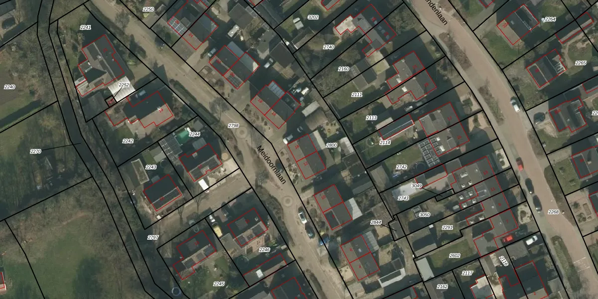 Meidoornlaan 14 is gelegen op kadastraal perceel WRJ00A2800. Deze kadastrale aanduiding is uniek en wordt gebruikt door het Kadaster om eigendomsrechten en andere zakelijke rechten vast te leggen. Het perceel maakt onderdeel uit van de kadastrale gemeente Wanroij.