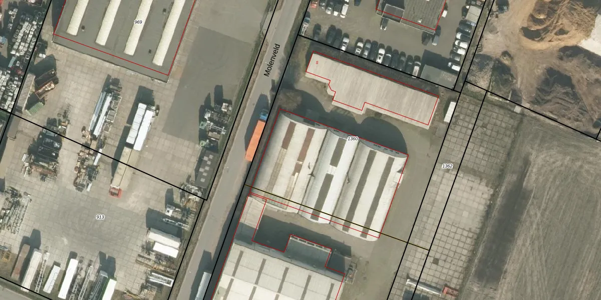 Molenveld 5-b is gelegen op kadastraal perceel WRJ00K1360. Deze kadastrale aanduiding is uniek en wordt gebruikt door het Kadaster om eigendomsrechten en andere zakelijke rechten vast te leggen. Het perceel maakt onderdeel uit van de kadastrale gemeente Wanroij.