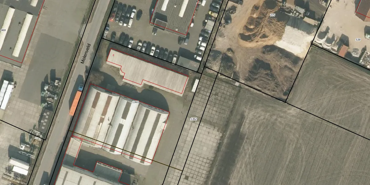 Het perceel waarop Molenveld 5-r staat heeft een oppervlakte van 3056 m². Dit is een zeer groot perceel. De perceeloppervlakte wordt geregistreerd door het Kadaster. Gedetailleerde informatie over de maten van dit perceel kunt u vinden in het rapport Kadastrale kaart met maatvoering van Molenveld 5-r.
