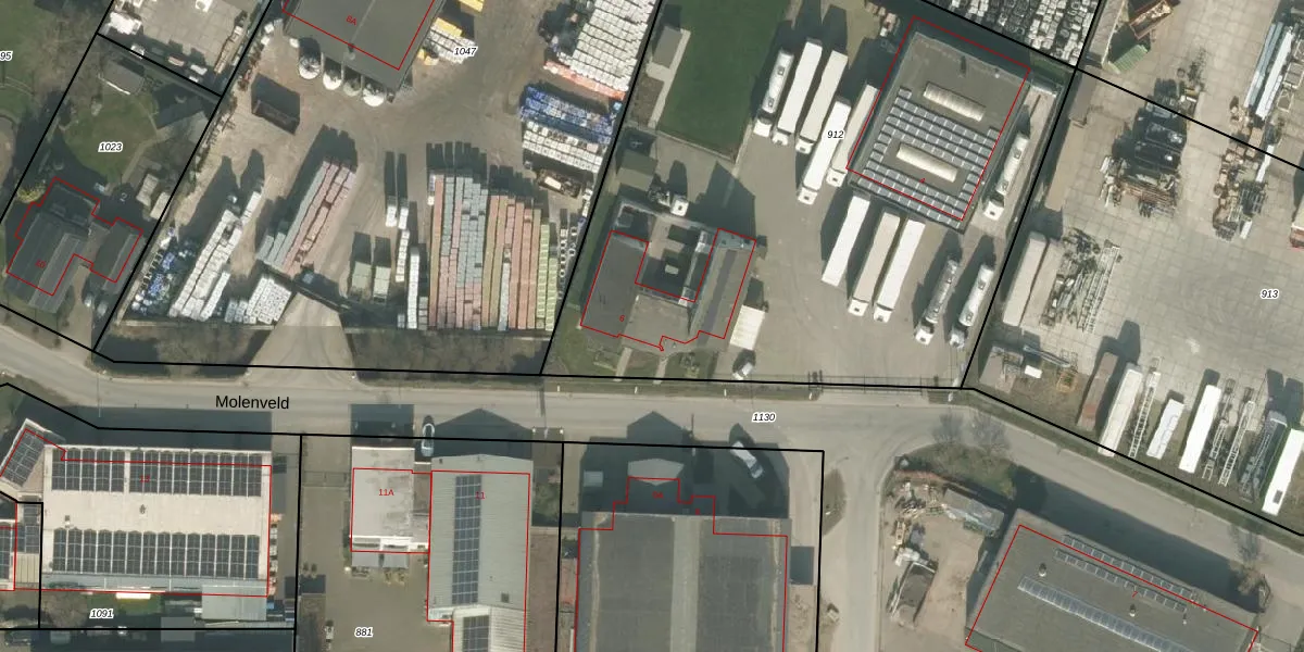 Het perceel waarop Molenveld 6 staat heeft een oppervlakte van 4053 m². Dit is een zeer groot perceel. De perceeloppervlakte wordt geregistreerd door het Kadaster. Gedetailleerde informatie over de maten van dit perceel kunt u vinden in het rapport Kadastrale kaart met maatvoering van Molenveld 6.