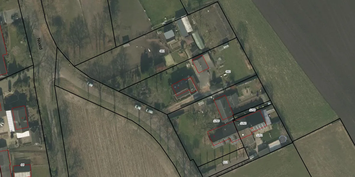 Het perceel waarop Noord 3 staat heeft een oppervlakte van 1550 m². Dit is een zeer groot perceel. De perceeloppervlakte wordt geregistreerd door het Kadaster. Gedetailleerde informatie over de maten van dit perceel kunt u vinden in het rapport Kadastrale kaart met maatvoering van Noord 3.